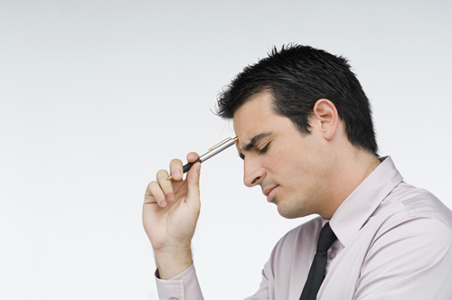 추천 이미지: 손에 계산기를 든 채 고민하는 사람의 모습