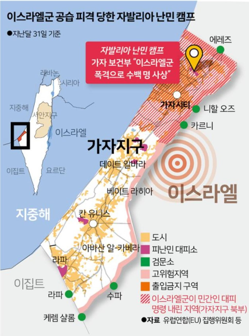 가자지구는 팔레스타인의 일부 지역이지만, 현재 하마스(Hamas)라는 무장 단체가 통치하고 있습니다. 이스라엘과 하마스는 자주 군사적 충돌을 벌이며, 민간인 피해가 커지고 있습니다.