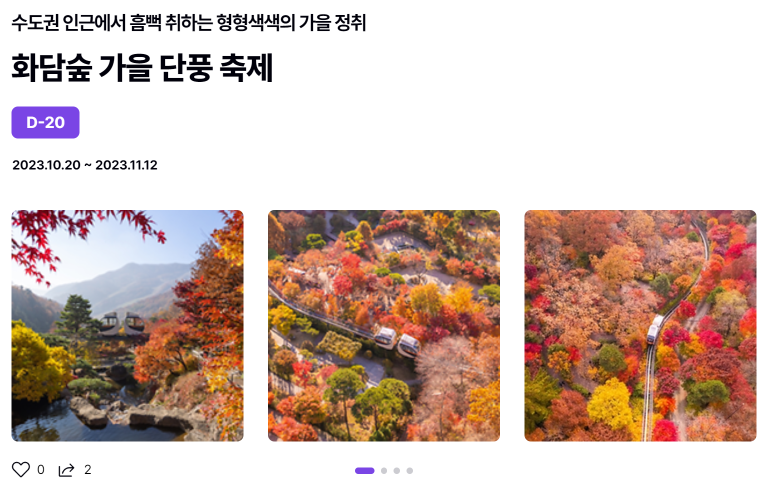 마지막으로 모든 방문객들이 안전하고 쾌적한 환경에서 단풍 구경할 수 있도록 각자가 주변환경 보호에 신경 쓰는 것 역시 잊지 말아주세요. 즐거운 가을 되시기 바랍니다^^
