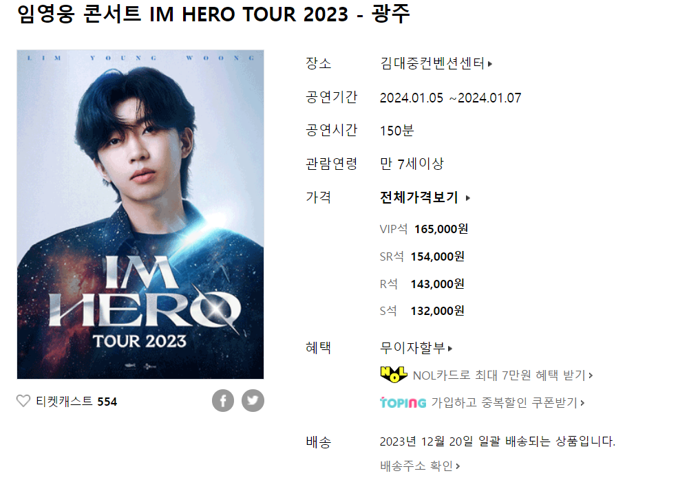| 광주 | 김대중 컨벤션센터 | 2024.1.5~1.7 | 2023.11.16(목) 오후 8시 |