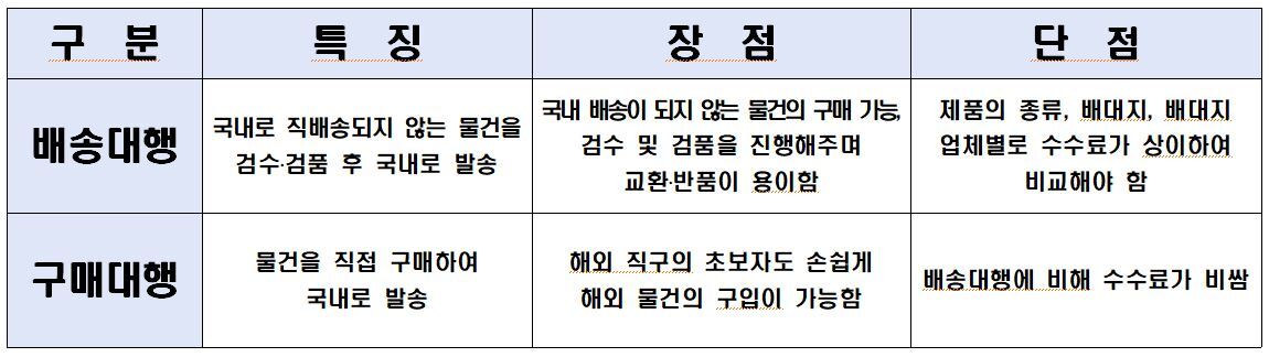 배송대행 업체는 말 그대로 배송대행 업무를 수행하기도 하지만 최근에는 물건을 직접 구매하여 배송까지 해주는 구매대행을 수행하는 업체도 많이 늘어나고 있습니다. 살펴 보시고 본인에게 유리한 형태로 선택 바랍니다.
