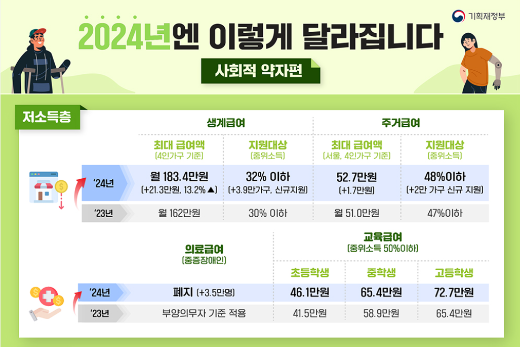 2024년부터 달라지는 지원금과 관련된 대표적인 주요 정책은 다음과 같습니다.